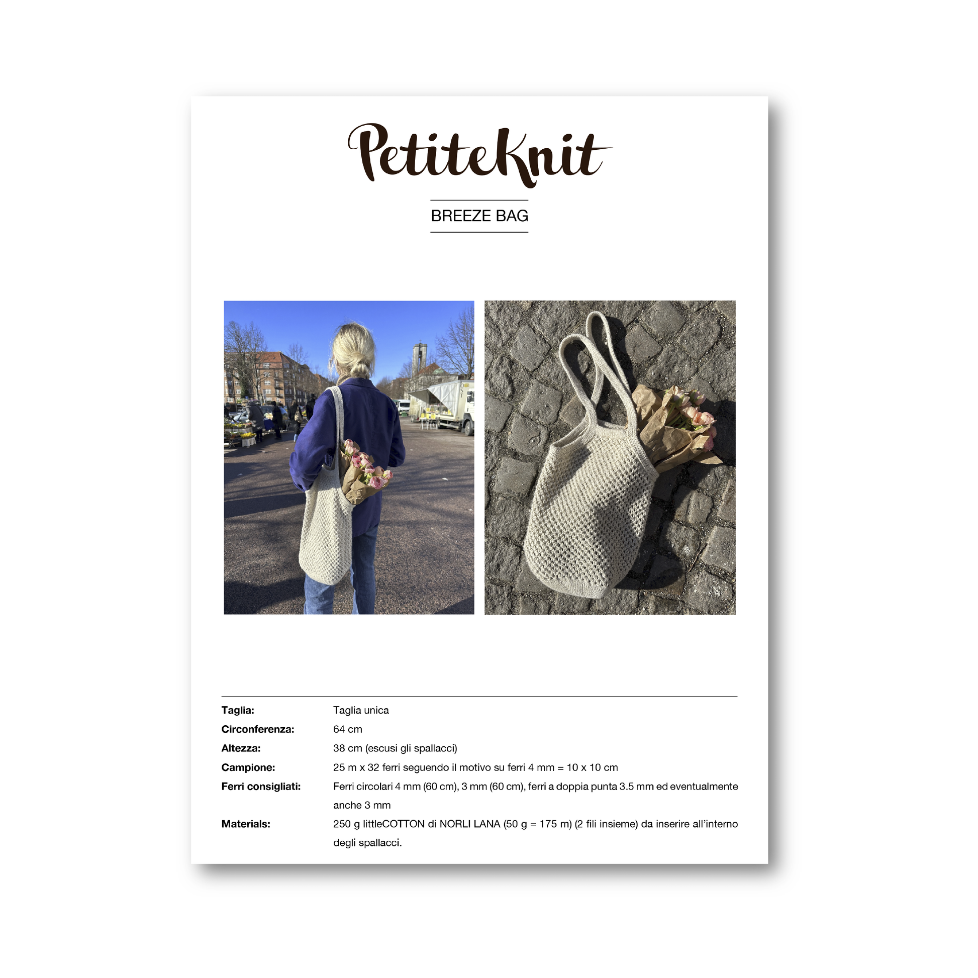 Please note that it is only possible to buy the printed copy of Breeze Bag pattern in Italian here on our website. For the pattern in English look HERE