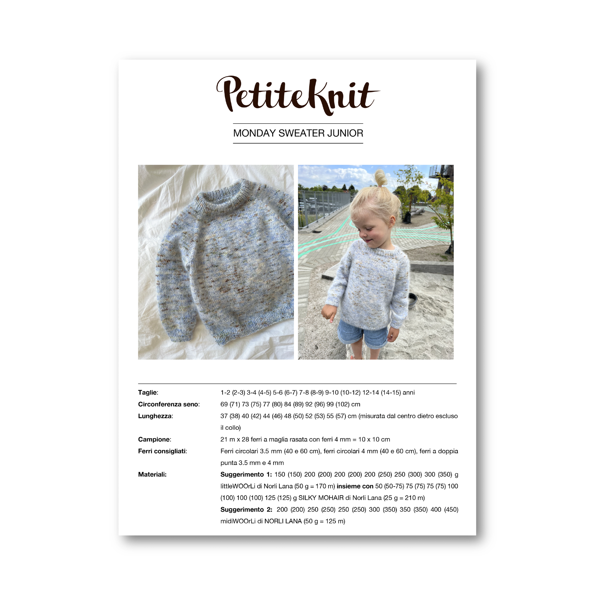 Un modello classico della grande designer PetiteKnit...MONDAY SWEATER JUNIOR.