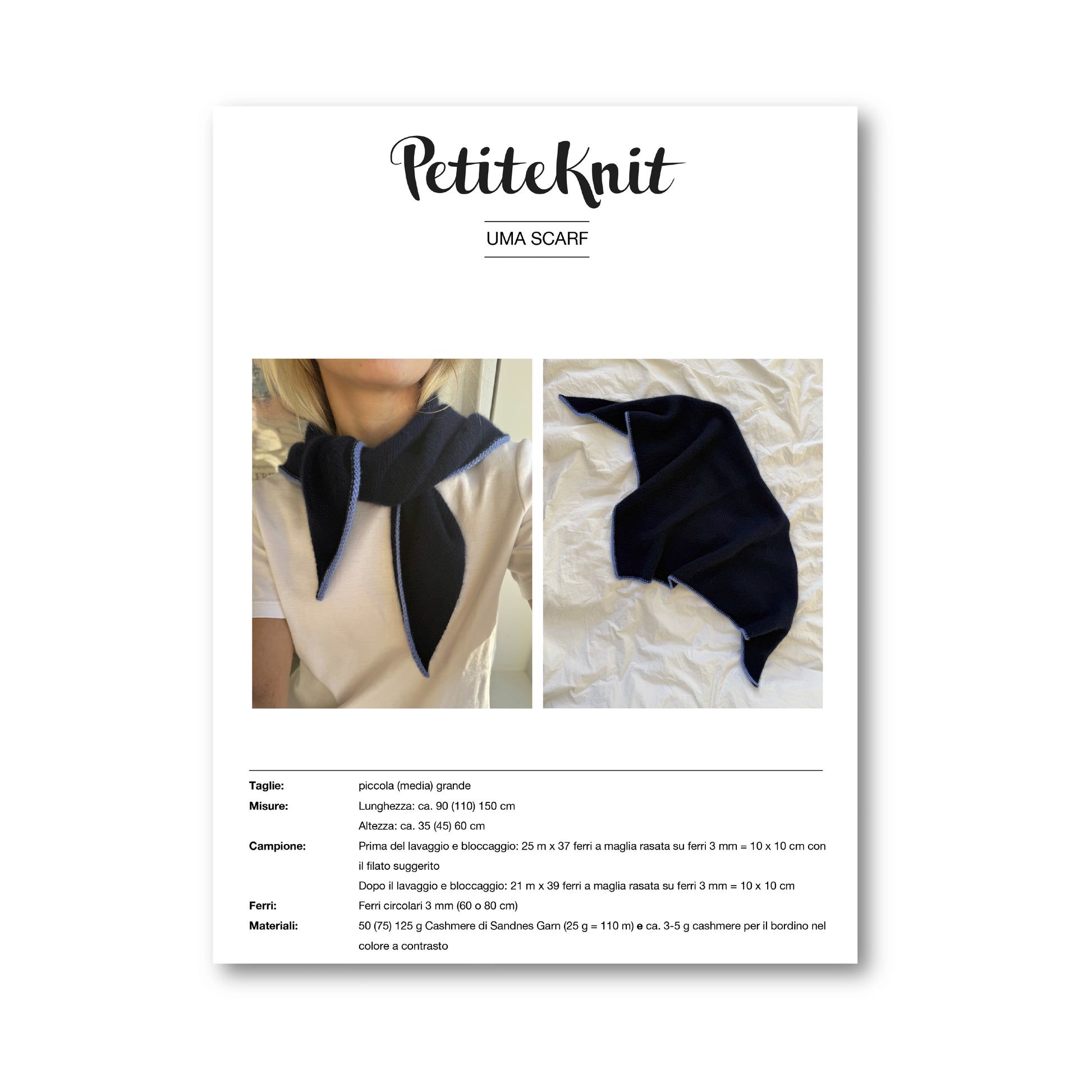 Questo KIT comprende il libretto di istruzioni in ITALIANO di Uma Scarf by PetiteKnit insieme al tuo FILATO NORLI preferito. Nota: se desideri lavorare questo progetto con i filati Norli, consigliamo di lavorare WOOrLi BIG LOVE su ferri 4 mm anzichè ferri 3 mm (come indicato nelle istruzioni) per poter ottenere il campione di tensione previsto e un risultato perfetto.